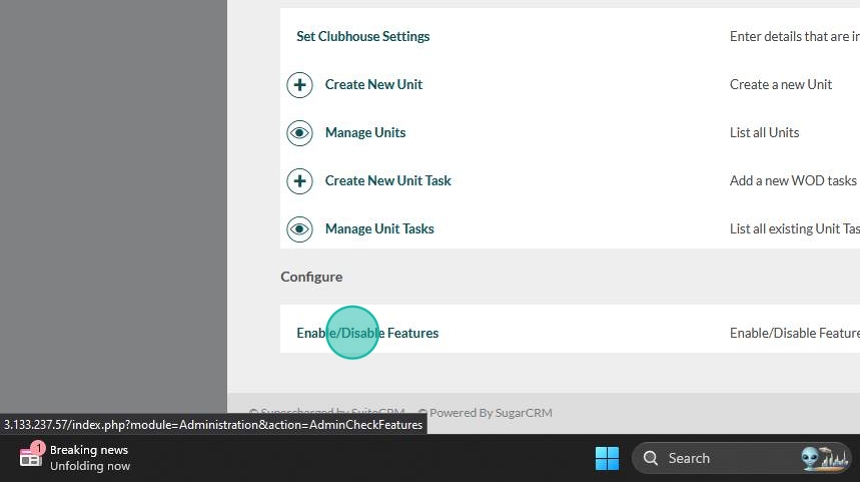 In the Admin panel, scroll all the way to the bottom and click on “Enable/Disable Features”