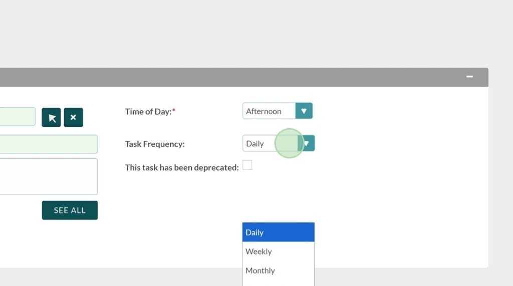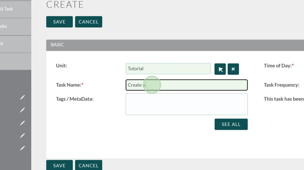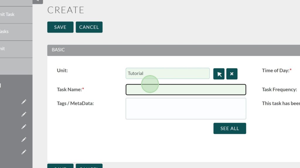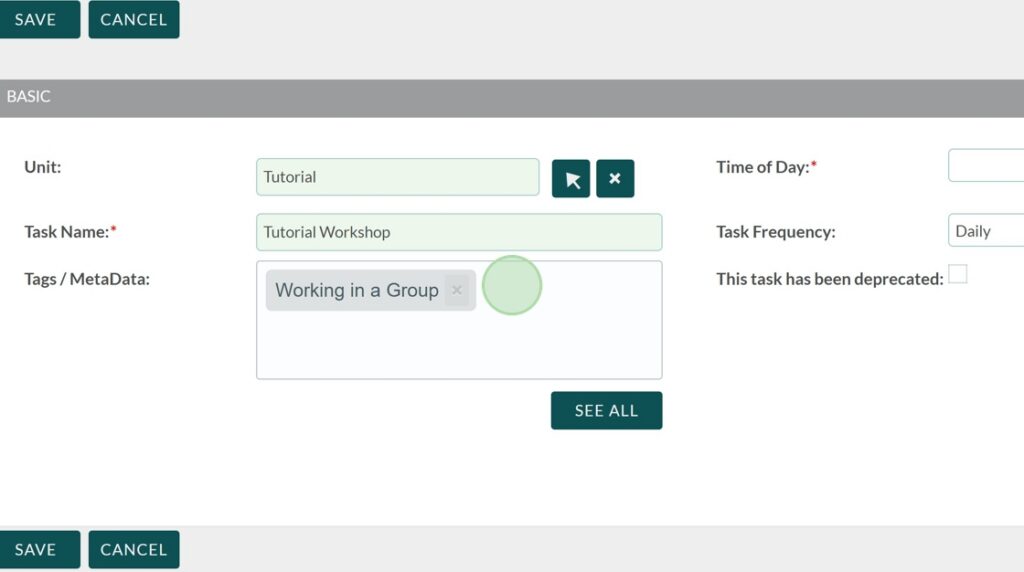 For the creation of the “Snack Bar” task, we first select the “See All” button which allows us to see the list of existing tags.