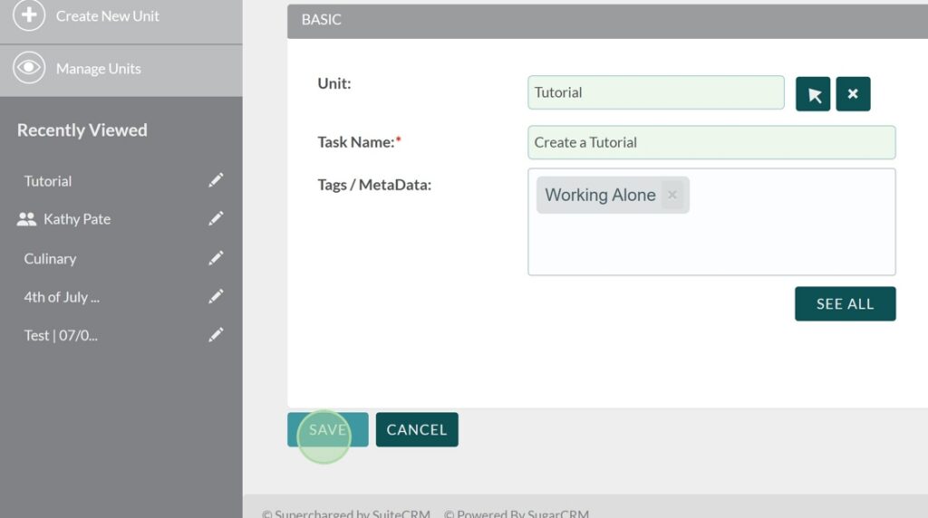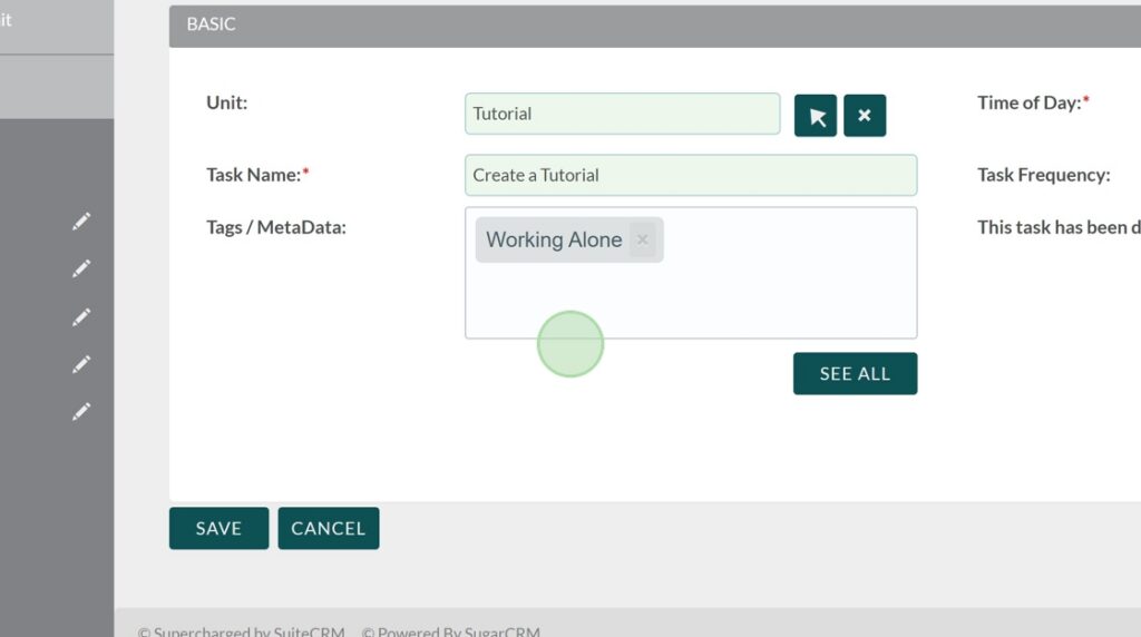 For this task, “Working Alone” is an existing tag, so let’s go ahead and just use that since this work is more of a individual task.