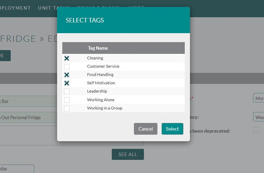 From there, we are able to apply Tags that relate to the job skills of that task. To finalize the selection, press “Select”.