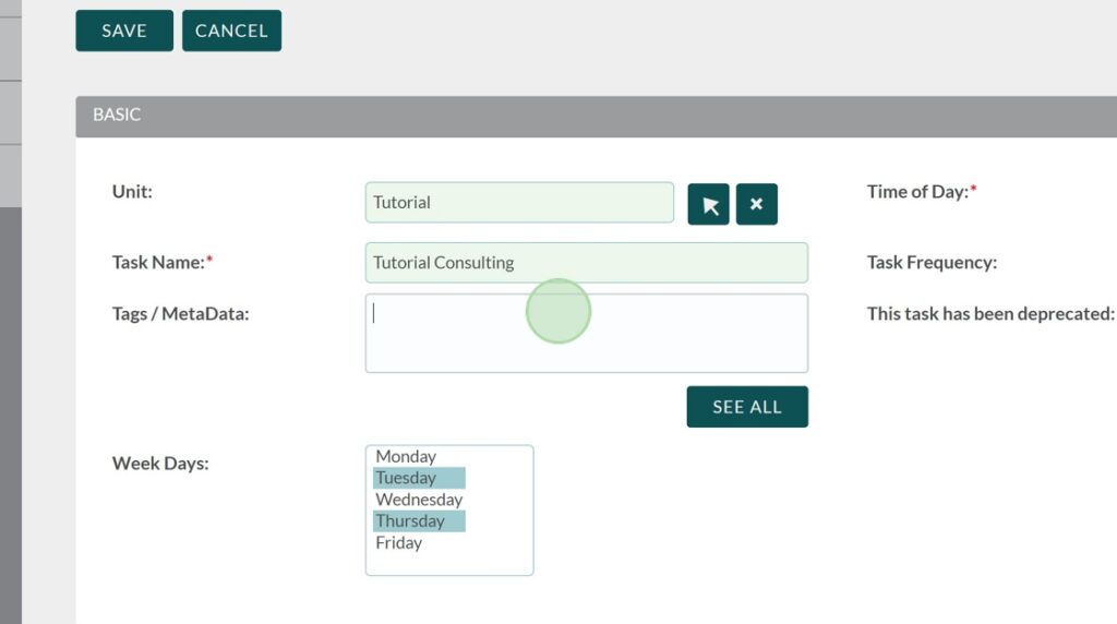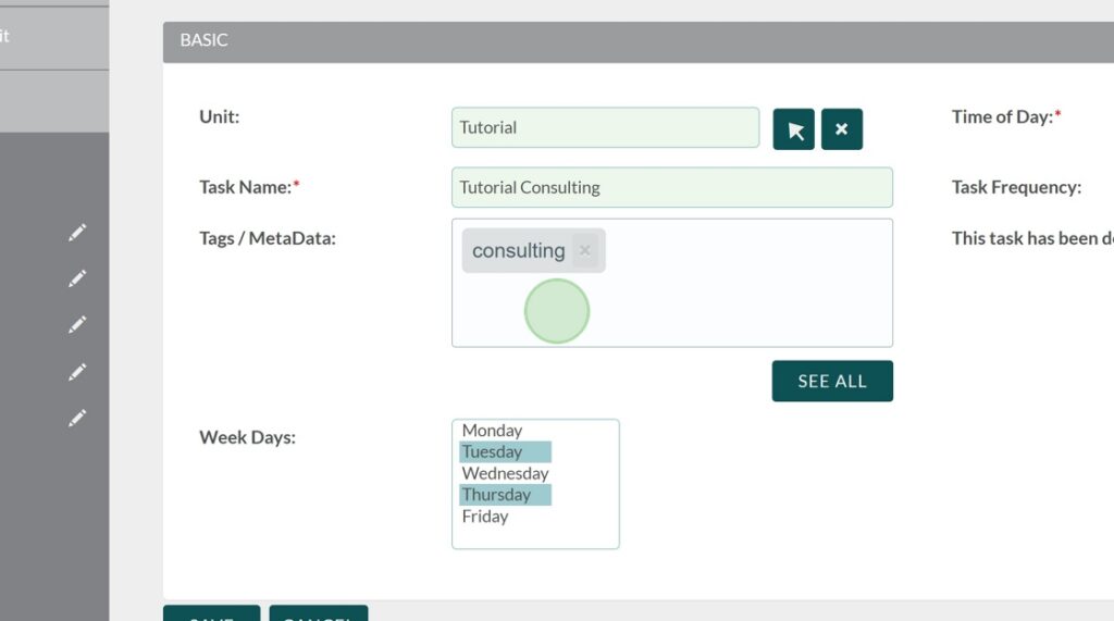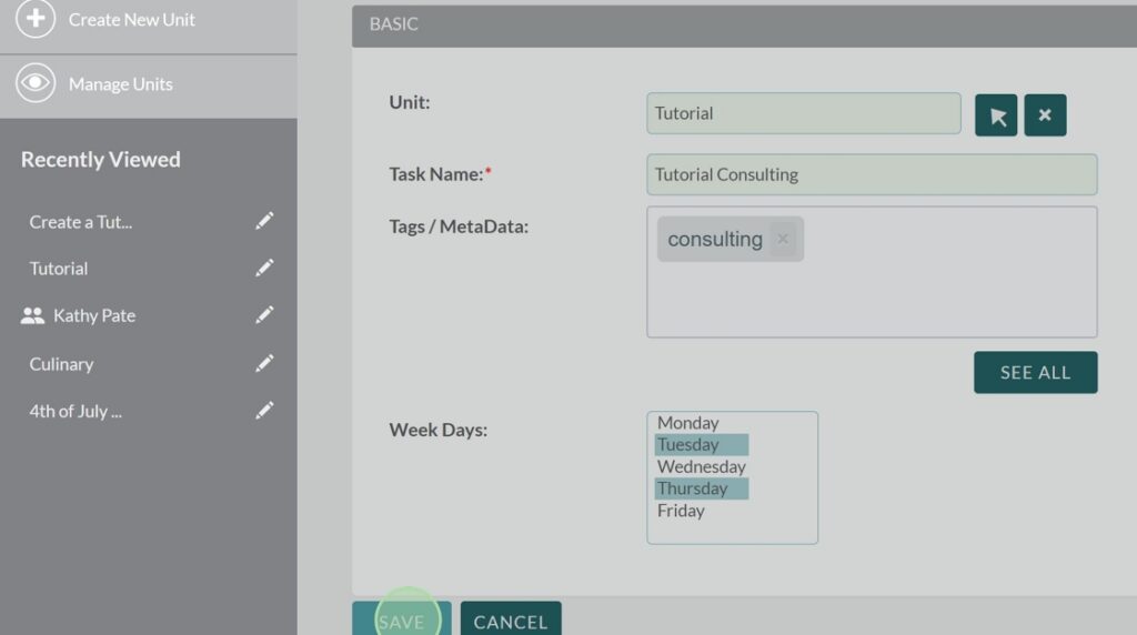 For this unit task, we will name it “Tutorial Consulting” in the “Task Name” field
