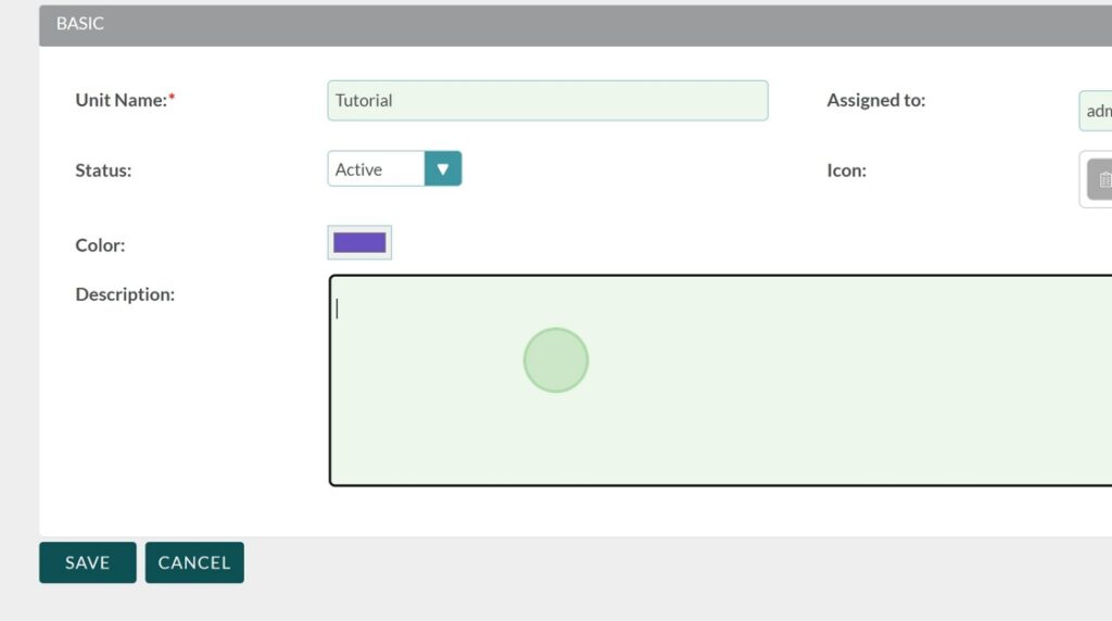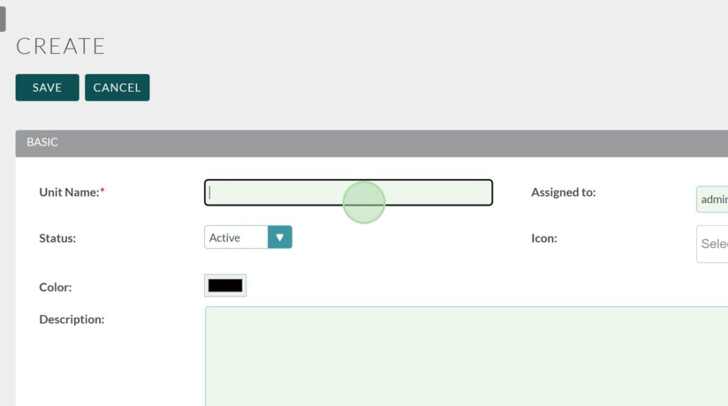For this tutorial, we will be creating a “Tutorial” unit in the highlighted field