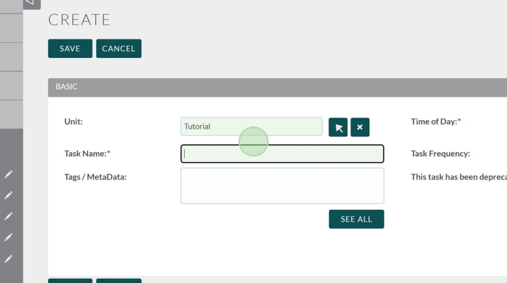 Note: Marking the task as deprecated is the only way you should discontinue a unit task. This means that you will not be able to select the unit task for data entry anymore, but it can still appear on previous tasks of when the task was still active. This works to prevent loss of data in general and for other functions like reports.