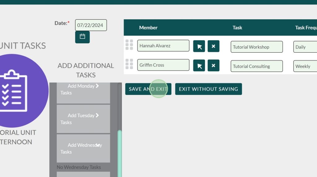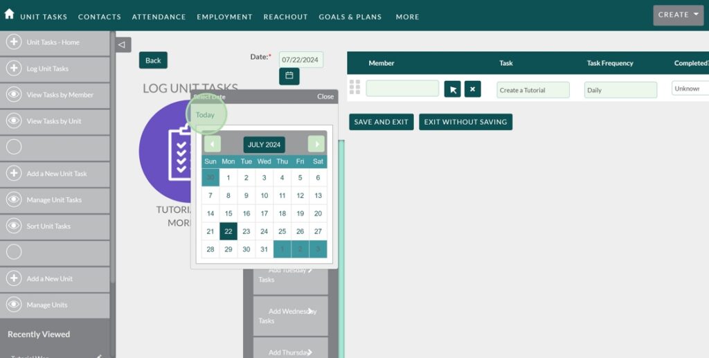 Note: The Units allow you to view when daily units are not being completed by not deleting the tasks the get marked as “Unknown” or “No” under the “Completed?” field. This can help your clubhouse notice tasks that go left undone.