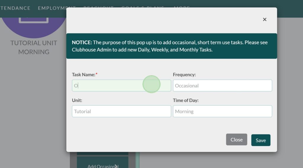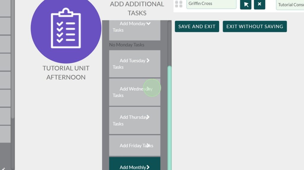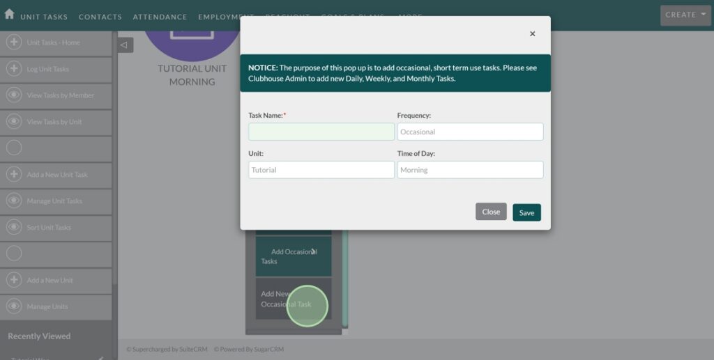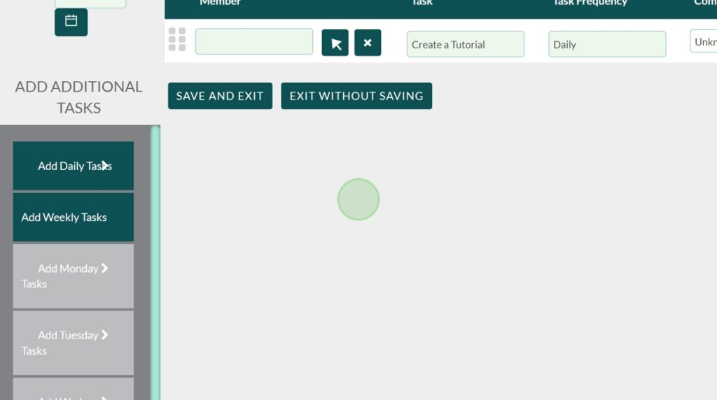 Our daily task is done, but we have a new member who wants to take part of the Tutorial unit! This is not a task that happens on a Daily, Weekly, or Monthly basis. So since this task does not fit under any of the mentioned times, let’s go ahead and click on “Add New Occasional Task.”