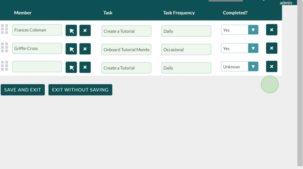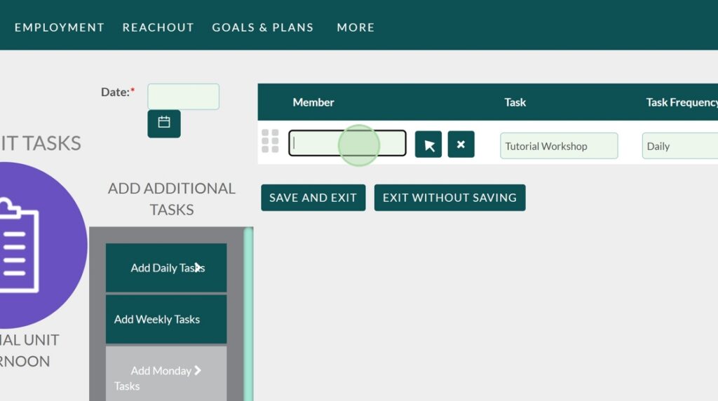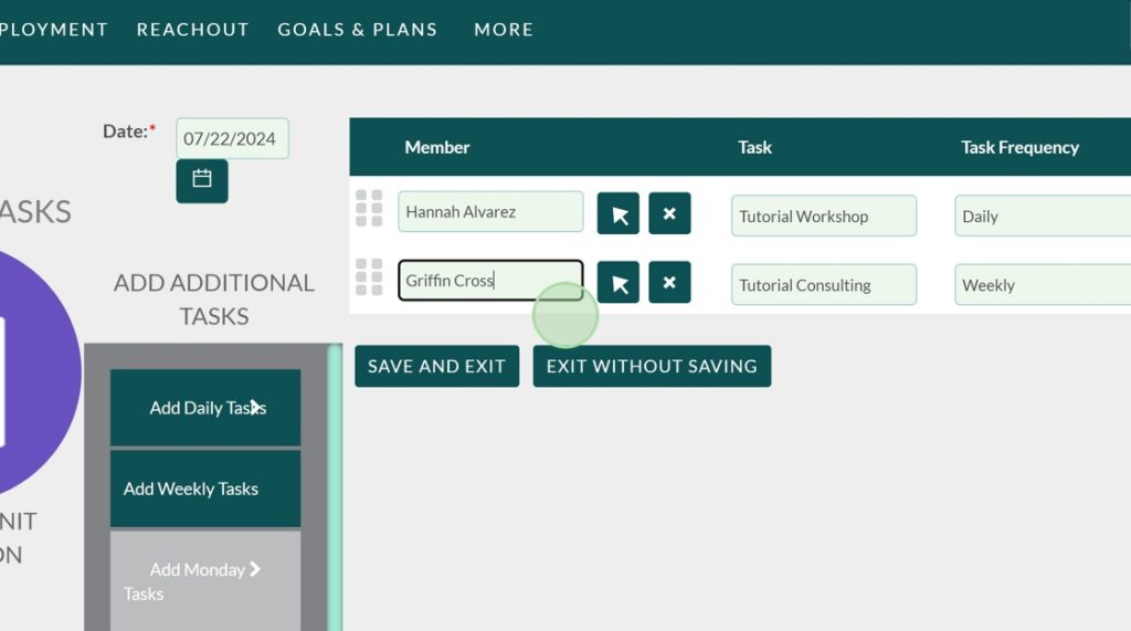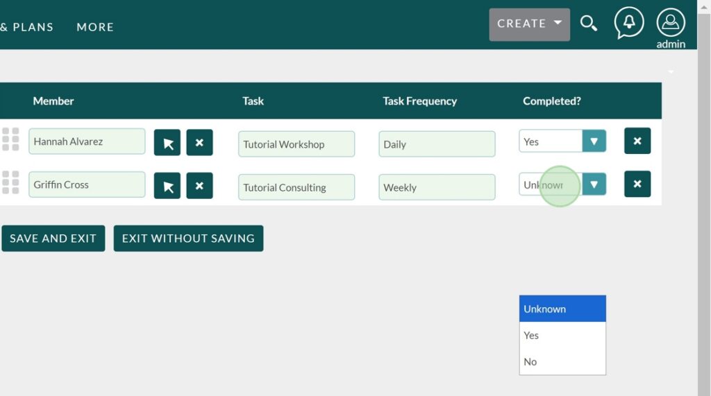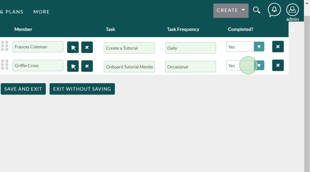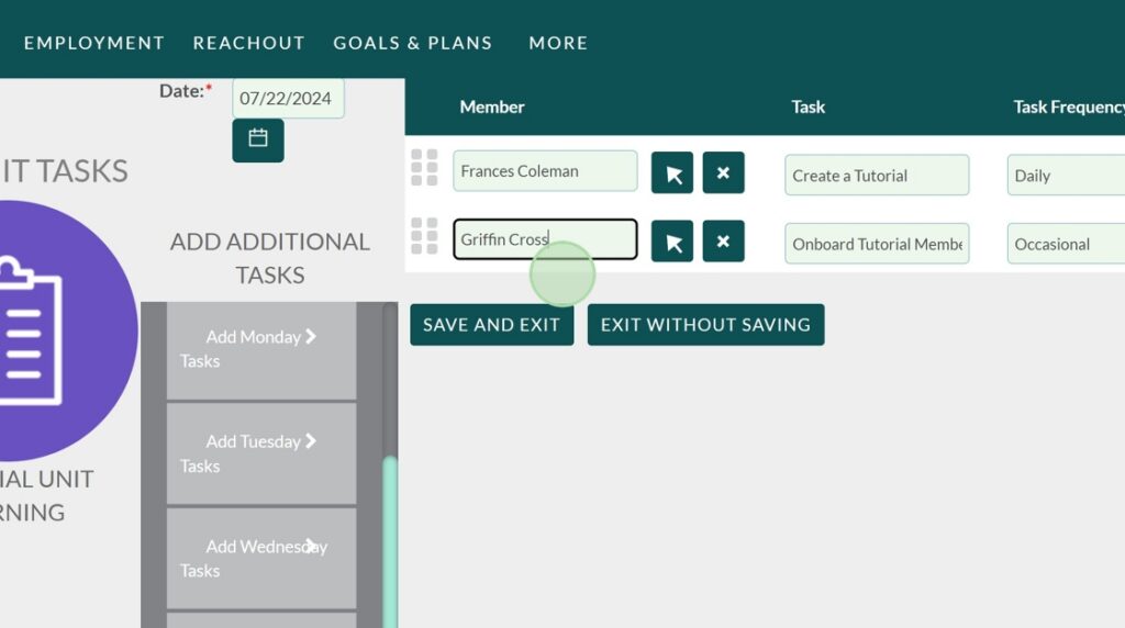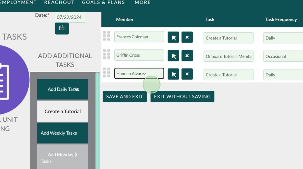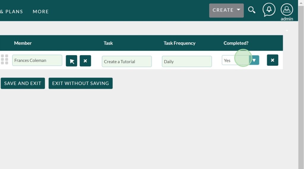 As you can see, for Daily Tasks, they appear automatically on the data entry list. Let’s ago ahead and mark member Frances Coleman as our task assignee.